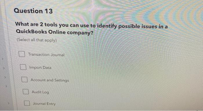 Edit answer Q4 What are 2 tools you can use to identify possible issues in a QuickBooks Online Company. The request appears in the clients QuickBooks Online company in My Accountant If you wish to notify your client of your request with a QuickBooks Online-generated email select Notify client. Check all that apply.