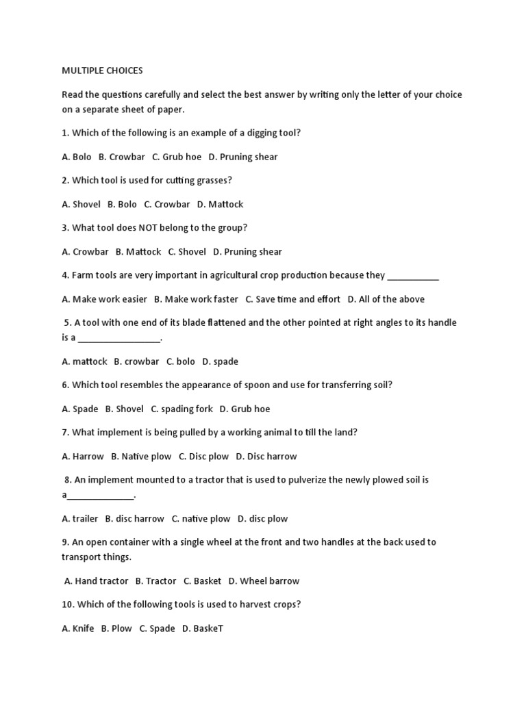 Appropriate Farm Tools Are Identified According To Use Farm Tools Are Checked Course Hero